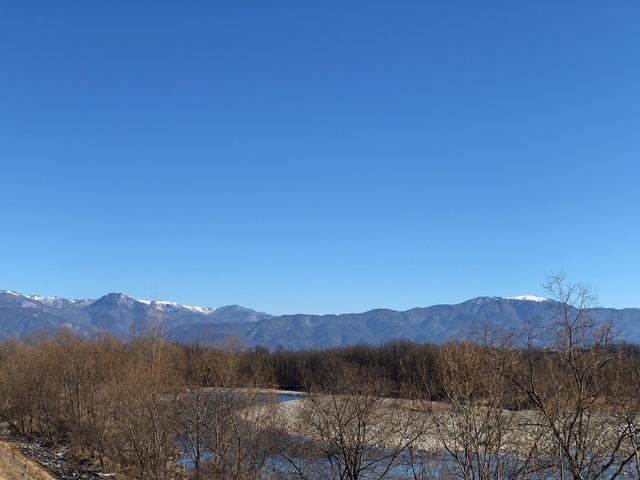 1月9日 梓川と遠く左に美ヶ原と右に八伏山